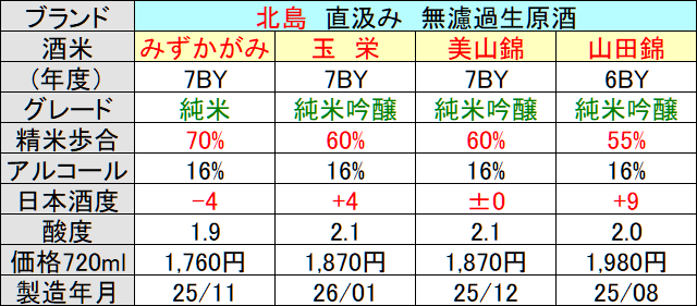 試みに、今回の「飲み比べシリーズ」の比較表を作ってみました。飲み比べが終わった時点で、改めてまとめてみたいと思います。