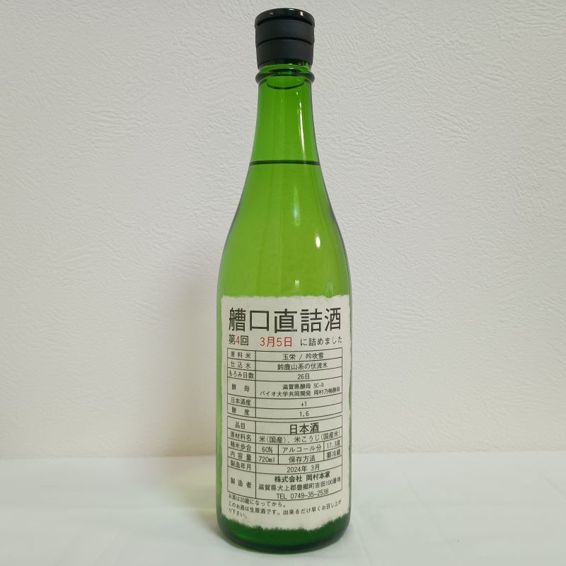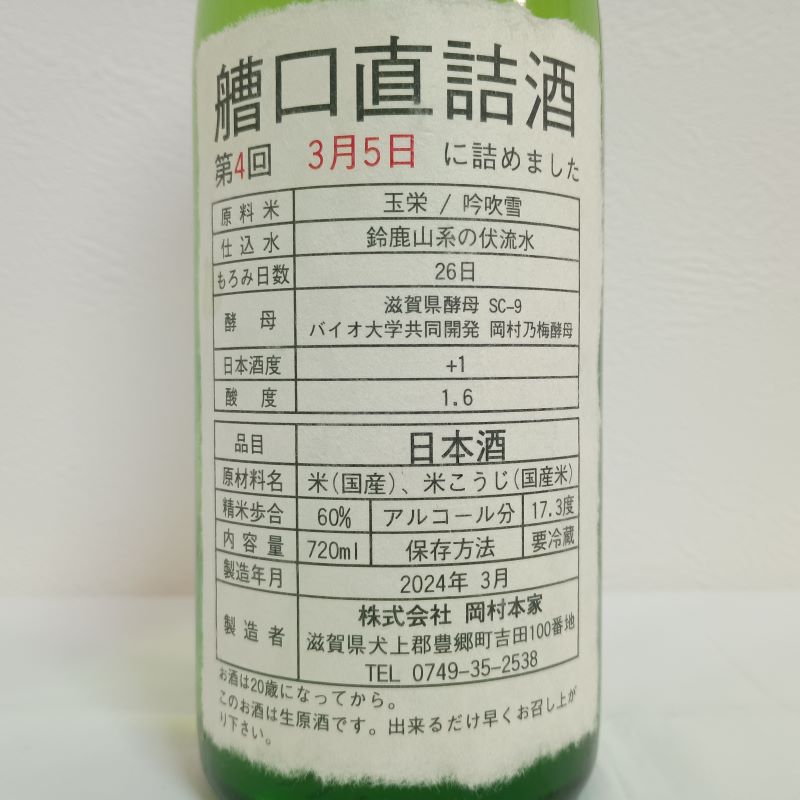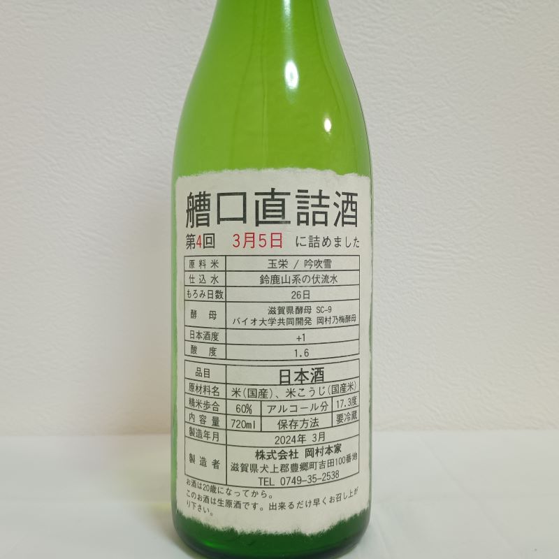 今宵の滋賀酒はこちら。岡村本家さんの金亀「艚口直詰酒」生原酒 その3です。
