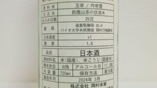 - 酒米 : 玉栄、吟吹雪
