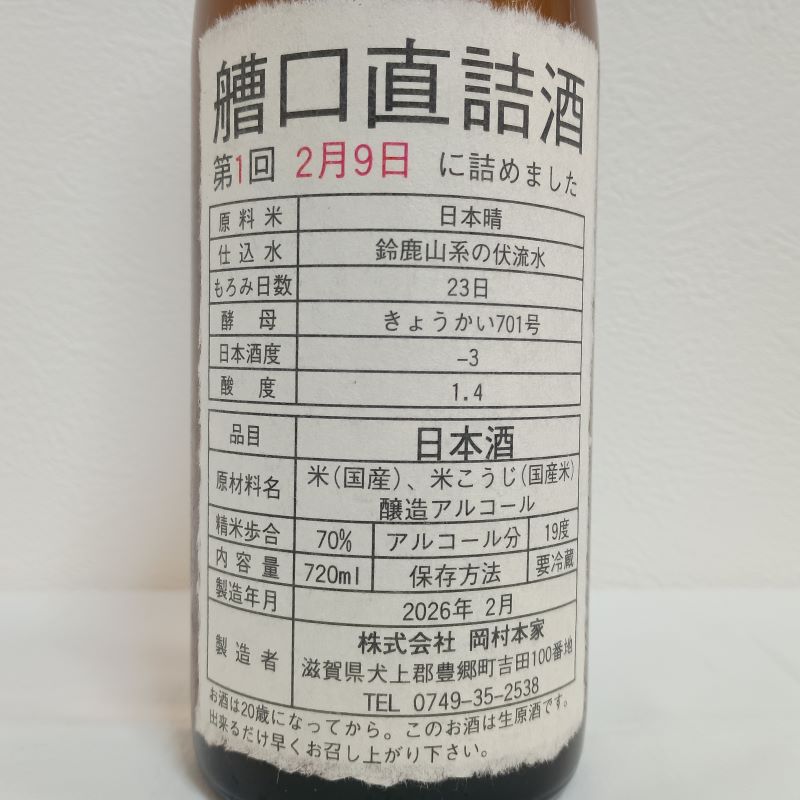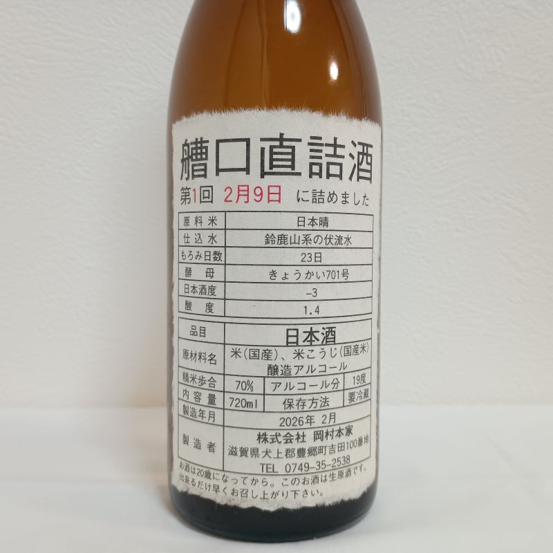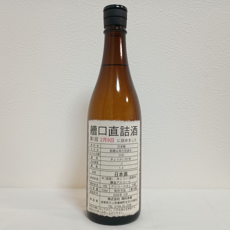 今宵の滋賀酒はこちら。岡村本家さんの金亀「艚口直詰酒」生原酒です。