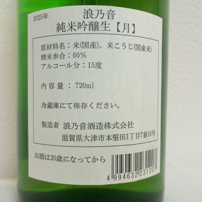今宵の滋賀酒はこちら。浪乃音酒造さんの浪乃音「純米吟醸 生【月】」です。