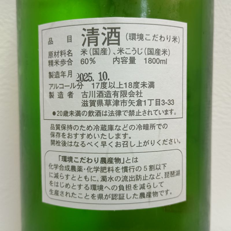 加藤酒店さんの評では「滋賀県産みずかがみ60%精米。旨味・酸味・苦味など多くのが味わいが複雑に絡み合い、幅のある穏やかな風味が楽しめる」とのこと。