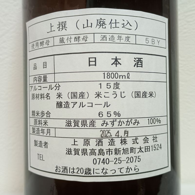 今宵の滋賀酒は、上原酒造さんの不老泉「上撰 山廃仕込」です。