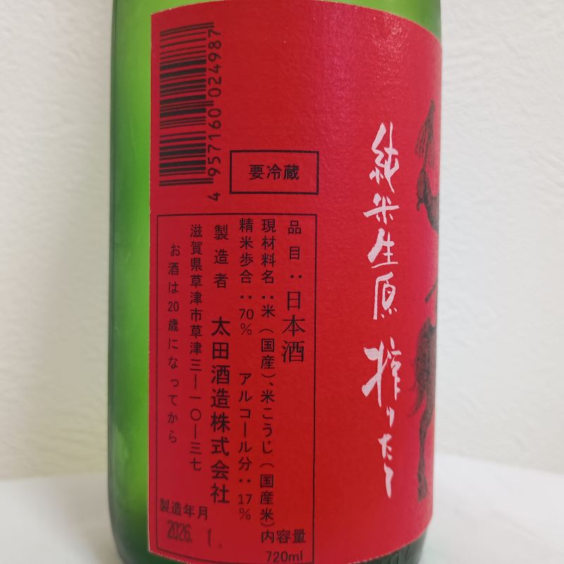 今宵の滋賀酒はこちら。太田酒造さんの道灌「只今見参 純米生原 搾りたて」です。